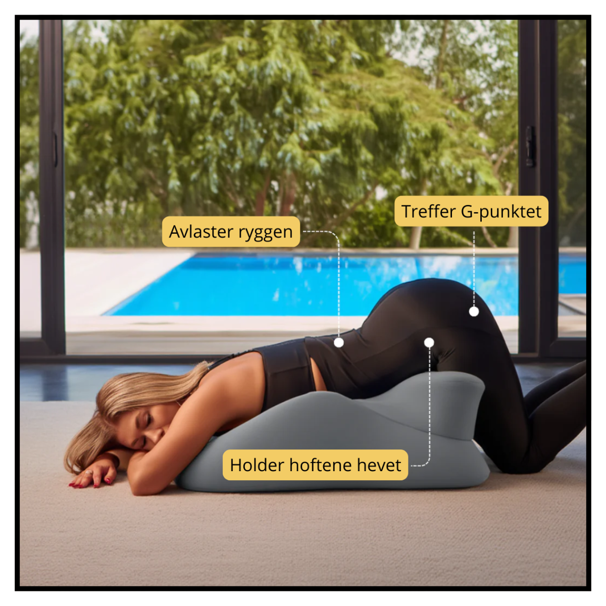 Bekkenet forblir stabilt, rygg og hofter støttes, og kroppen kan endelig slappe av.
